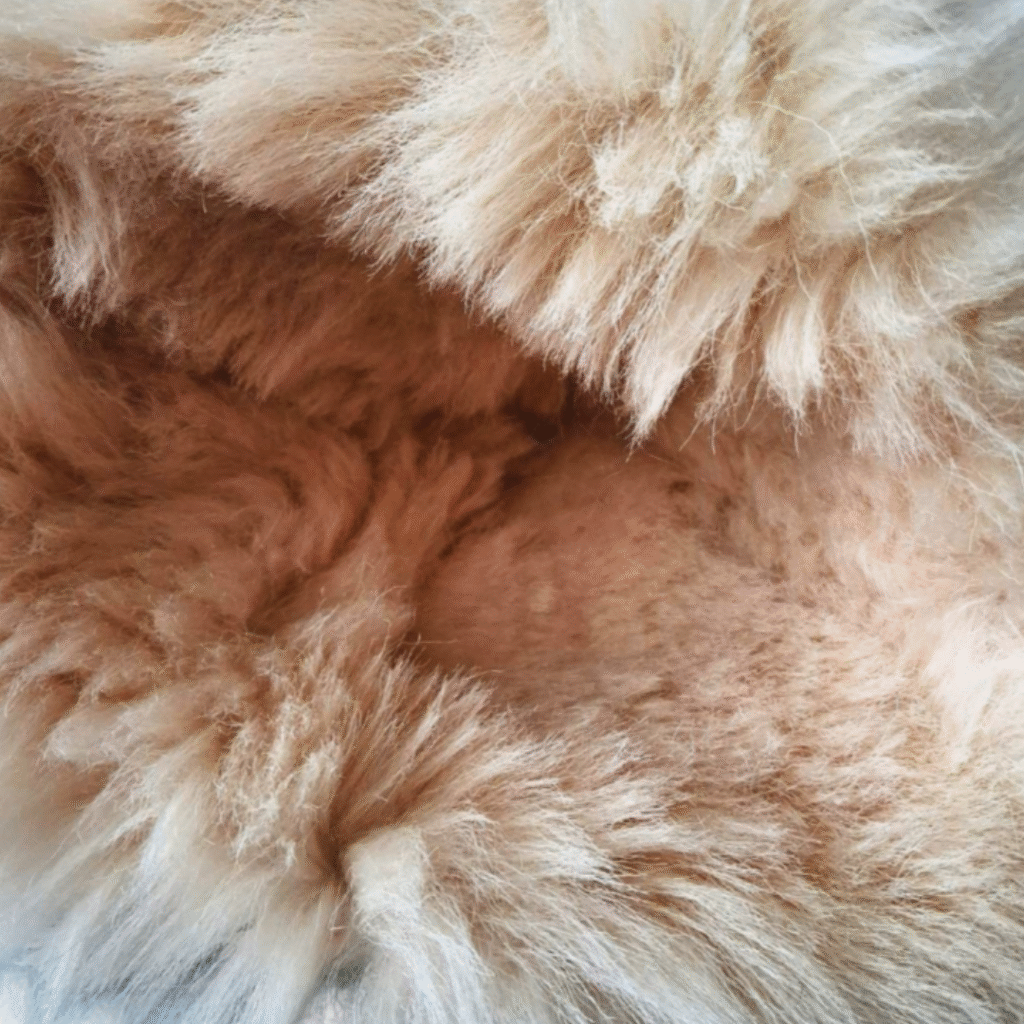 Lamba karusnahast müts. Oranži värvi. Hele karv (pikk)